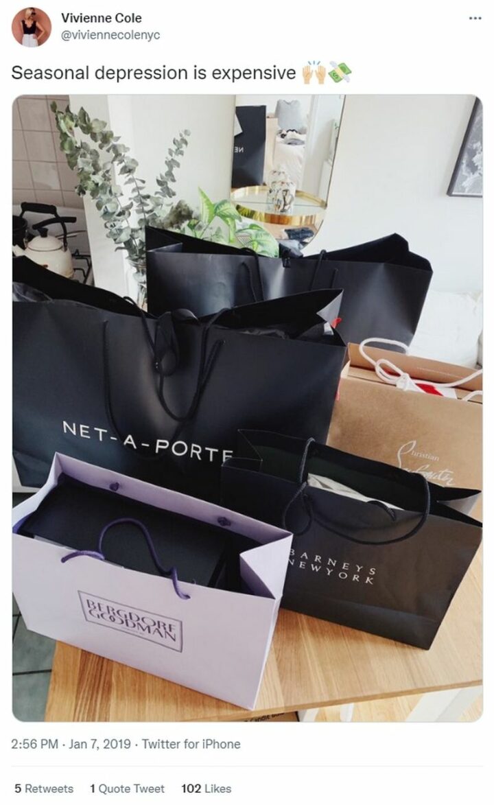 33) “When you just dropped $80 at Sephora but season affective disorder still got you feeling away.”