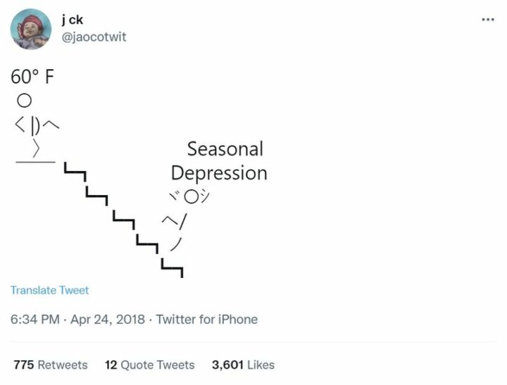 21) “60 degrees Fahrenheit and seasonal depression.”