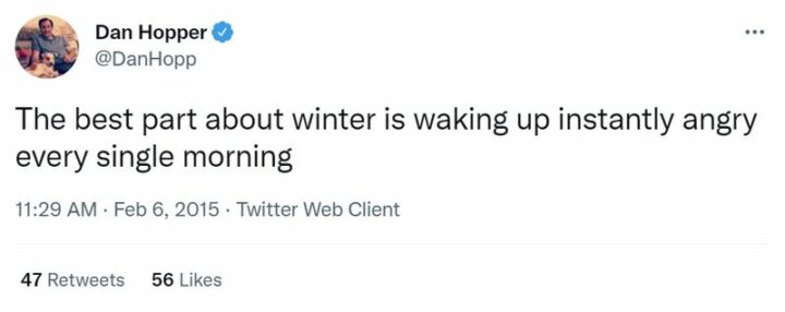 23) “The best part about winter is waking up instantly angry every single morning.”