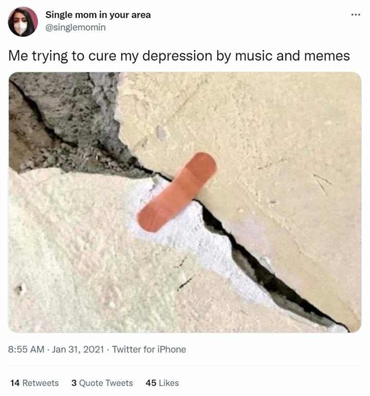 26) “Me trying to cure my depression by music and memes.”