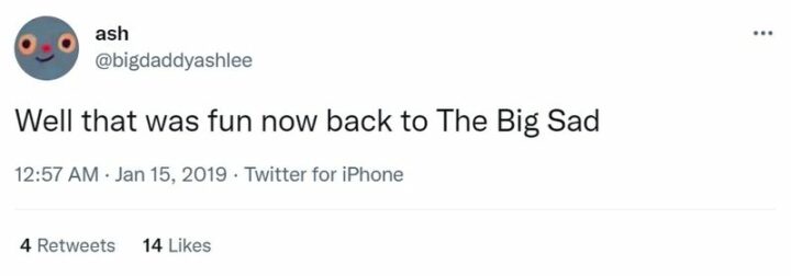 29) “Well, that was fun now back to The Big Sad.”