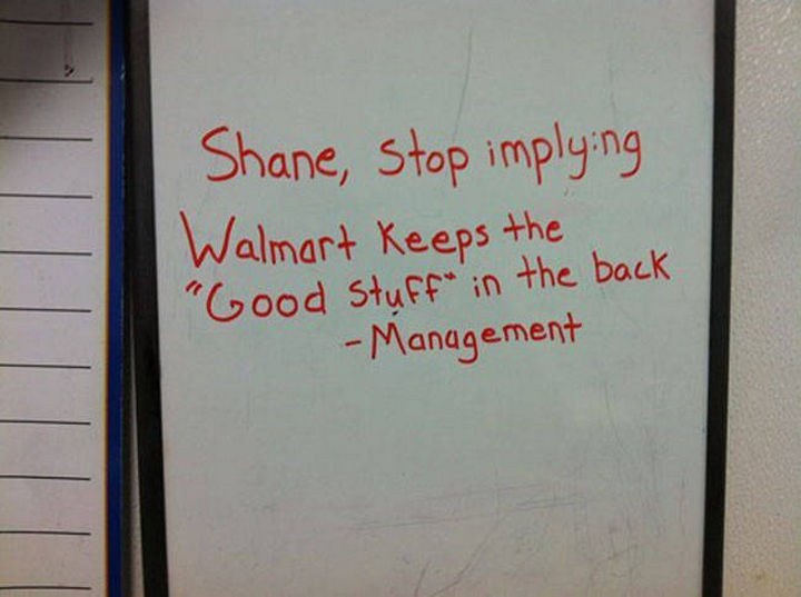 “Shane, stop implying Walmart keeps the “good stuff” in the back – Management.”