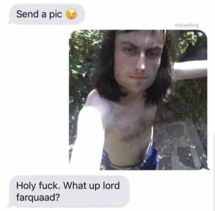 “Send a pic. Holy [censored]. What up Lord Farquaad?”