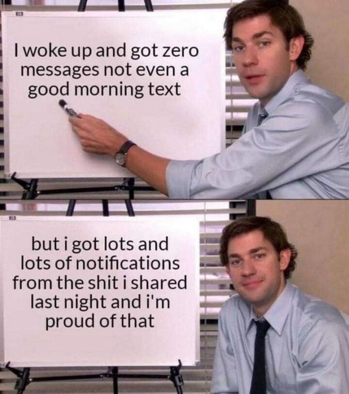 !["I woke up and got zero messages not even a good morning text but I got lots and lots of notifications from the [censored] I shared last night and I'm proud of that."](https://www.winkgo.com/wp-content/uploads/2021/08/stupid-memes-62-720x814.jpg)