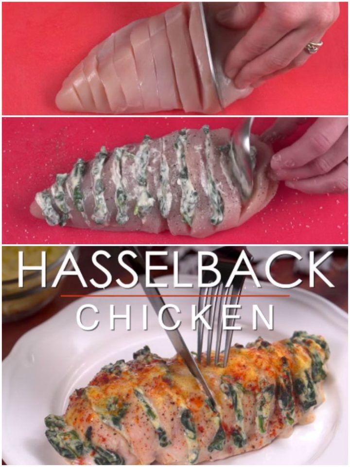Watch how to make stuffed hasselback chicken…