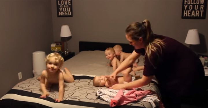 If you ever had to put a baby to bed, you know how exhausting it could be; however, imagine getting triplets and a toddler ready for bed at the same time! Corrie-Lynn Whyte of Cambridge, Ontario, Canada is one mom that definitely deserves an award for single-handedly getting all of her kids in their pajamas and ready for bed in epic time.