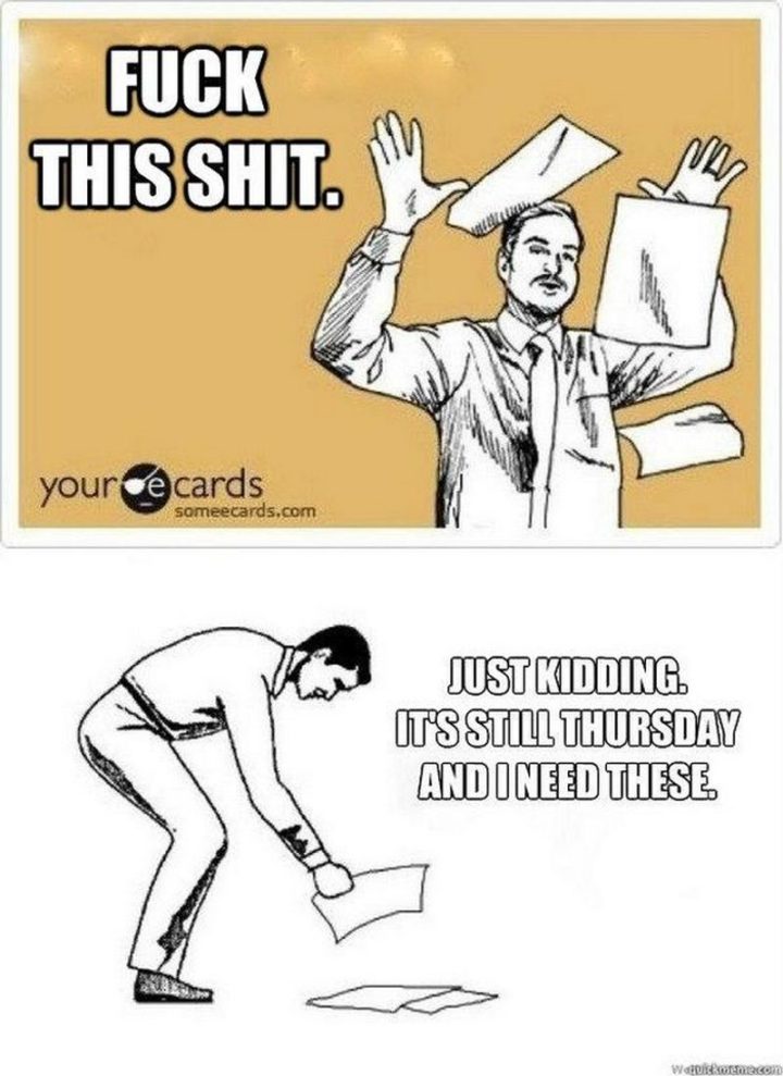 “Thursday. The most useless day. It only exists as a reminder that it’s been a really long week…and it’s still not over.”