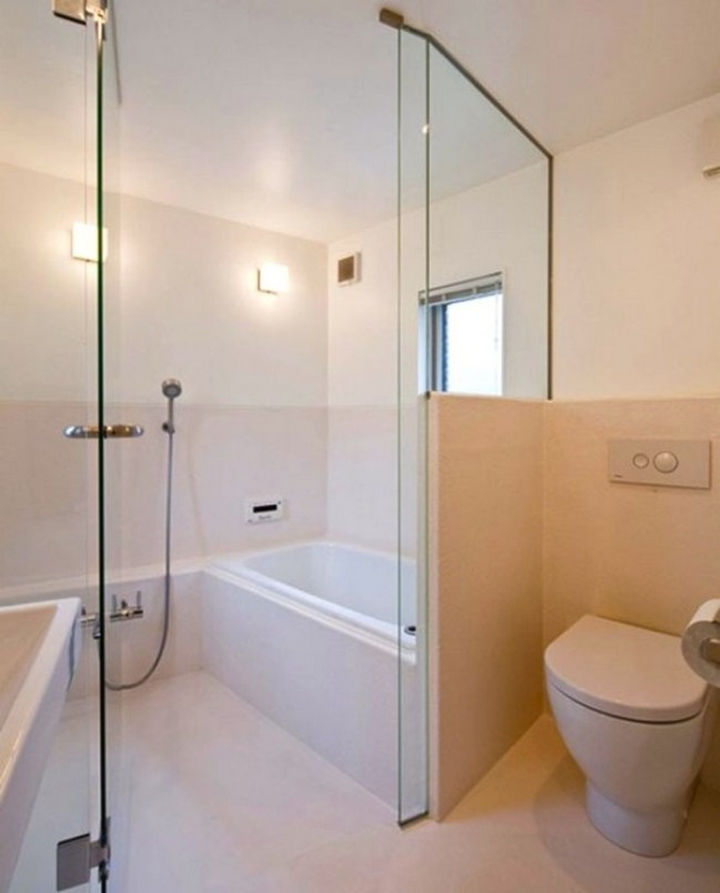 The washroom is very impressive with clean lines and it appears spacious.