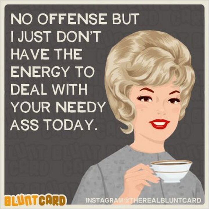 “No offense but I just don’t have the energy to deal with your needy [censored] today.”