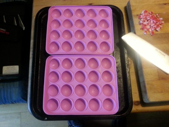 Normally cake pop trays have one side with holes in them so you’ll need two sets. Amazon has a great set of 20 Silicone Tray Pop Cake Stick Mould.