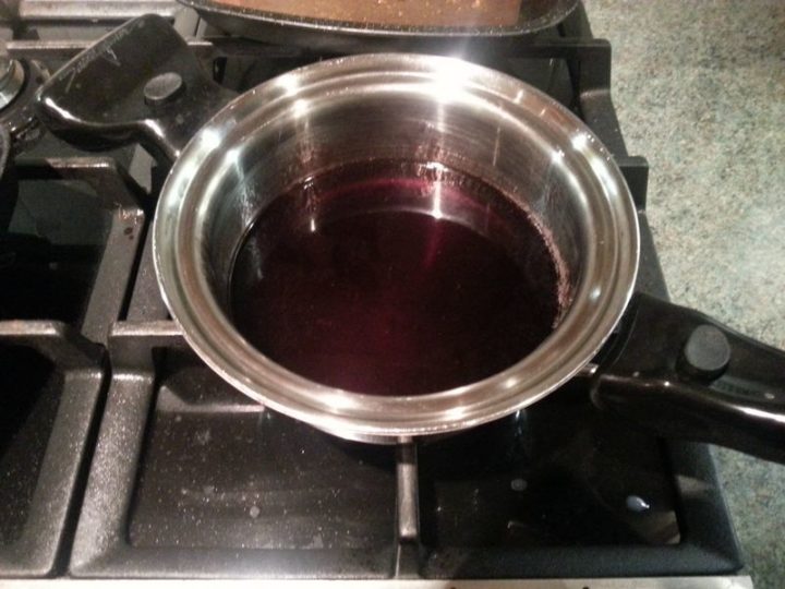 Melt the grape or purple pieces on low heat. Only need to add a teaspoon of vodka.