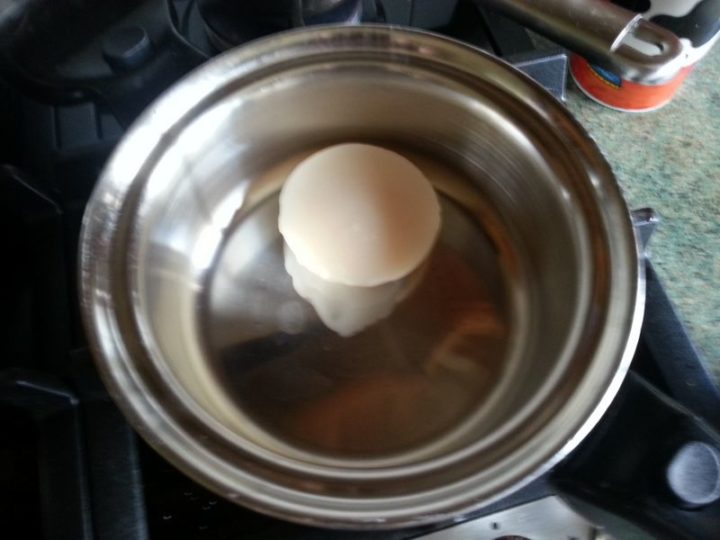 Melt the red pieces and add 150 Milliliters of vodka. Pour into the mold when melted.